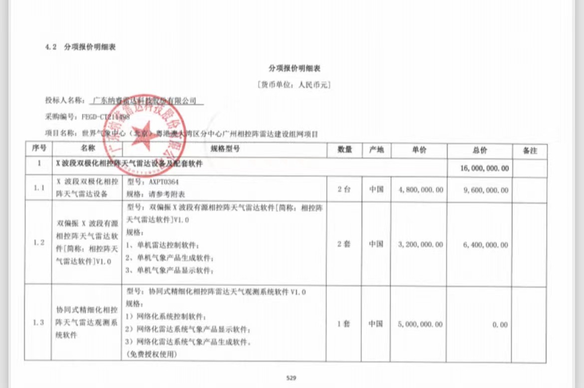 合同包1(世界氣象中心(北京)粵港澳大灣區(qū)分中心廣州相控陣雷達建設(shè)組網(wǎng)項目):